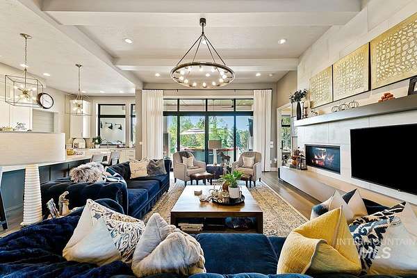 To Be Built by Zach Evans Construction. This Single Level home is open and airy and full of natural light. The large great room opens up to a covered patio that is perfect for entertaining. The Primary Bedroom is spacious and features a large walk in closet, peaceful retreat for recharging. This floor plan is custom and features a total of 3 bedrooms and a media room or rec room. Could also be used as a 4th bedroom. The home includes high end finish levels, with an allowance for a well and septic system. The garage is supersized with an RV BAY that measures 12X50, as well as a 3 car garage. These 5 acre homesites are perfect for hot summer nights. Front yard landscaping is included. PHOTOS ARE FOR ILLUSTRATION PURPOSES ONLY