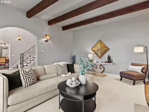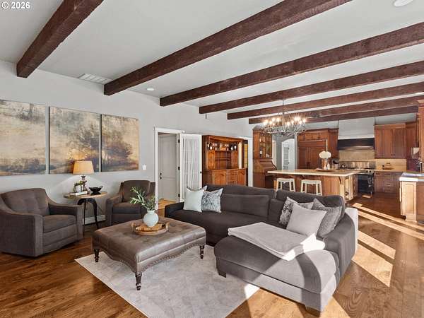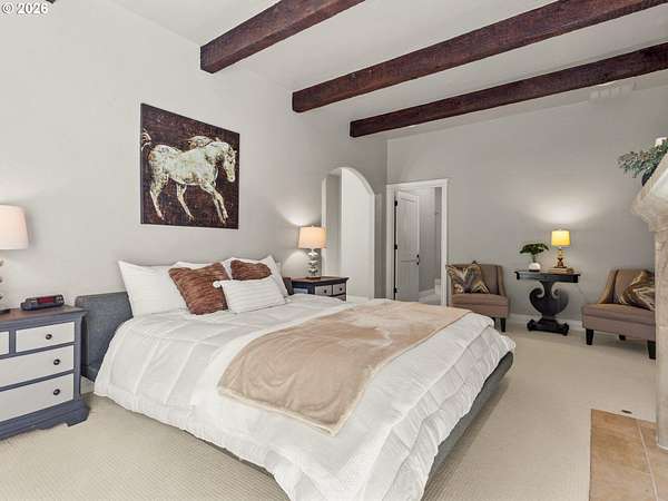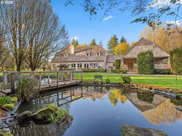Step into an incredible lifestyle where luxury blends with timeless charm on 2.38 acres within a gated community in the sought-after Westminster neighborhood! Quality shines through with beautiful stone exterior, a classic cedar roof, and elegant solid wood doors with black iron hardware built beautifully to last! Inside you'll be immediately captivated by the soaring exposed beams, hardwood floors and three incredible Italian stone fireplaces. The gourmet kitchen is an entertainer's dream with a fantastic island, dual farmhouse sinks, limestone counters and a gas stove. The main-level primary suite is your personal sanctuary, featuring a spa-like ensuite and a massive walk-in closet. Upstairs this home offers a second primary suite or bonus room and two additional welcoming bedrooms sharing a convenient Jack-and-Jill bathroom and ample storage throughout. Outdoors explore paver patios and inviting walkways that wind through the landscaped grounds leading you across a charming walking bridge over the tranquil KOI pond. Fire up the grill at your dedicated BBQ area and let the kids explore the outdoor playhouse. Don't miss your opportunity to own this lovely home! Schedule your showing today!