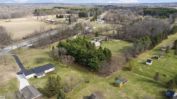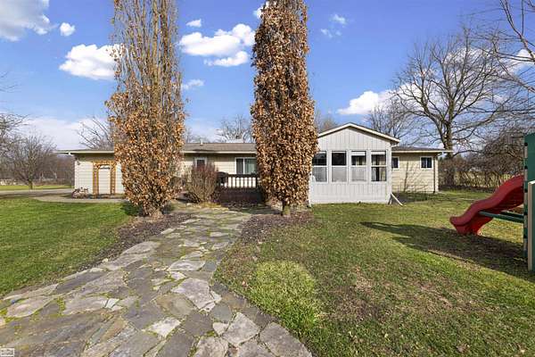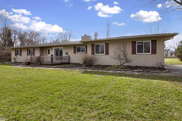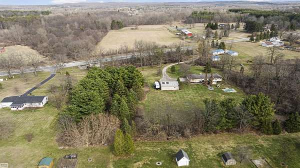 Nearly a 2200 sq ft ranch with just about 5 acres giving you plenty of space to roam and explore. The large pole barn (Approx.30'x40') has its own dedicated 220 electric panel and electric hook up for your vehicle or RV/camper. Many updates through out including Black Stainless Kitchen appliances & whole house central vacuum in 21’, several windows & carpet in 22’, LVP flooring in 23’, In-Line water filter & Reverse Osmosis System in 24’, Attic Insulation, Electrical Service Panel with generator safety switch, Aquasure water softener (owned), septic tank pumped out & whole home humidifier in 25’. Natural gas 90 efficiency furnace & hwt. Wonderfully sized rooms & primary suite. Stone fireplace in the Living rm. Large crawl w/ updated sump pump. Enjoy time this Spring, Summer & Fall in your 3 season room overlooking the large tree lined yard. Chicken coop w/ chickens can stay or go. So much to offer come see us today.