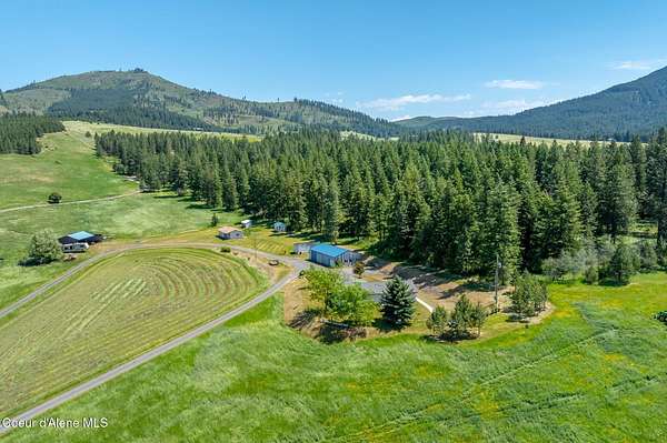 20 ACRES + TWO separate homes nestled in a beautiful private setting just 35 minutes from Moscow and the University of Idaho, and 1.5 hours to the Spokane International airport. The multiple outbuildings and regularly cared for hay fields make this property ideal for horses and other livestock. The main home features, recently updated interior, new roof and skylights, 1 year old heat pump for energy efficient heating and cooling and grand windows facing west to capture the stunning sunsets. You will never have to worry about water with the two active wells and a recently installed 3,000 gallon water holding tank. Each out building has power and is ready for you to decide how to best use the space.