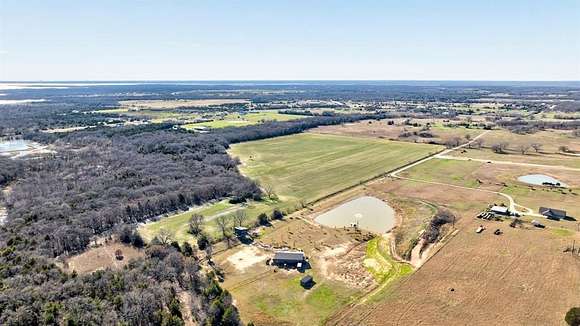 The property borders the Corp of Engineers land, offering privacy and direct access to nature, and is just 10 minutes to Lake Ray Roberts for boating, camping, and fishing.
