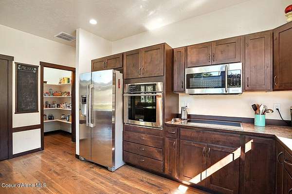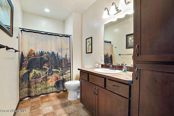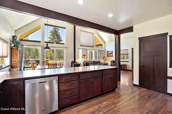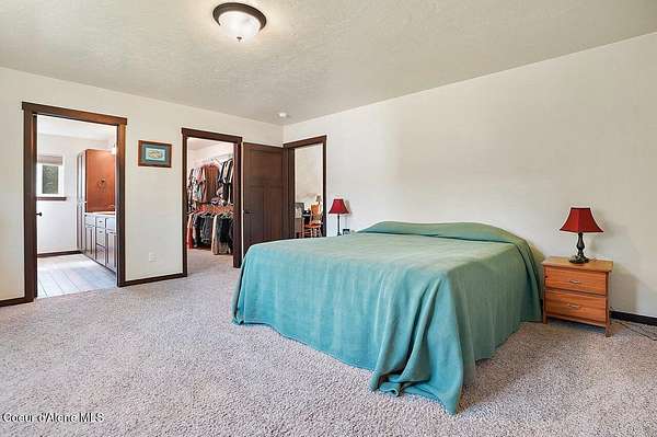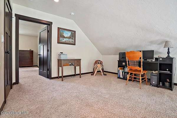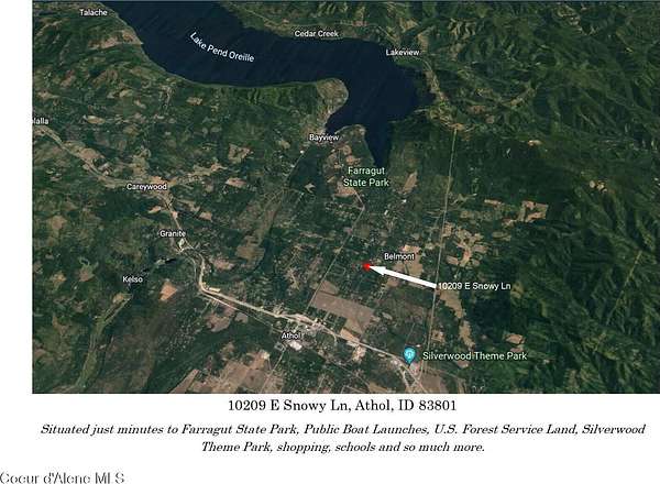 Enjoy peaceful, private living on 10 treed acres at the end of a no-through road. This home features an open kitchen with large peninsula, breakfast bar, walk in pantry, and dining nook. Vaulted ceilings and expansive windows fill the living area with natural light. Main floor offers laminate flooring, laundry area, two bedrooms, and a full bath. Upstairs, the primary suite includes a walk-in closet, dual vanities, tiled shower, and loft overlooking the living space. Property includes a storage shed and a 32' x 38' insulated shop with concrete floors, two 12' x 38' lean-tos, and a private bathroom. Convenient location near shopping and minutes to Farragut State Park for year-round recreation.
