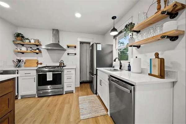 - Blinds, Built-Ins, Ceiling Fans, Ice Maker Connection, Led Lighting, Quartz Counters, Smoke Detector