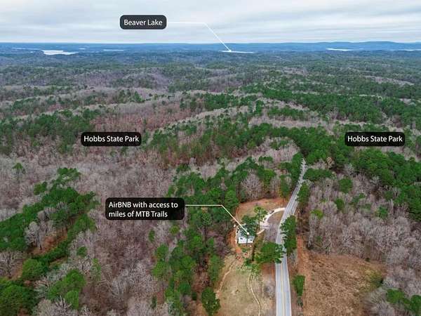 Nestled on 4.8 private acres with direct access to Hobbs State Park trails, Loblolly Pines is a dream retreat for cyclists, hikers, and nature lovers alike. This beautifully renovated home offers a seamless blend of comfort, style, and outdoor adventure. With 4 spacious bedrooms and 3 full bathrooms, the layout is ideal for families or groups. The main level features three bedrooms and two bathrooms, while the lower level offers a large guest suite with its own bathroom--perfect for added privacy. Enjoy serene woodland views from the expansive deck, gather around the cozy fire pit under the stars, and wake up to the sounds of nature. Whether you're looking for a peaceful escape or an income-producing investment, this home delivers. Located just 13 miles from downtown Rogers and 20 miles from the heart of Bentonville, you're never far from dining, shopping, and the vibrant arts and cycling culture of Northwest Arkansas.