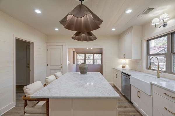 Charming, one-of-a-kind restored home by a local Interior Designer that showcases and blends historic character with modern luxury. This thoughtfully renovated house has been completely updated from top to bottom while preserving the warmth and charm that make it truly special. Inside, you'll find an inviting exclusive layout filled with natural light, beautiful finishes, and quality craftsmanship throughout. All major systems have been upgraded, including new electrical, plumbing, HVAC, insulation, windows, septic tank, and roof, offering peace of mind and energy efficiency for years to come. The kitchen features custom cabinetry, quartz countertops, new stainless-steel appliances, and stylish fixtures flowing seamlessly into the adorable dining room. The cozy living area is complemented by tasteful design details that give the home its unique personality and timeless appeal. This 3-bedroom, 2-bath, and sitting area or office is rich with character. Step outside to discover a private outdoor retreat highlighted by 2 original historic barns, a stunning outdoor fireplace, ideal for year-round enjoyment, relaxing evenings, or entertaining guests under the stars. The large 2-acres offers just the right amount of space for low-maintenance living while still feeling private and serene. This rare property combines charm, modern comfort, and character! It is Move-in ready and Truly Unforgettable.