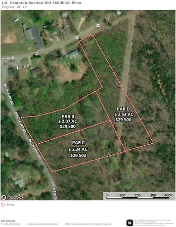 Est $220/moLOT B: This 2.07-acre surveyed lot offers a solid opportunity for residential construction in a quiet, rural setting. Located on Birch-Elmo Road with good frontage, the land is wooded with a healthy mix of pine and hardwoods, ideal for a private build. A recent soil study confirms it's ready for your plans. Whether you're looking to build now or secure land for later, this tract is manageable, usable, and well-positioned. Centrally located in Halifax County with an easy drive to both South Boston and Danville, it offers peace without sacrificing access.CLICK HERE TO REGISTER AND BID!