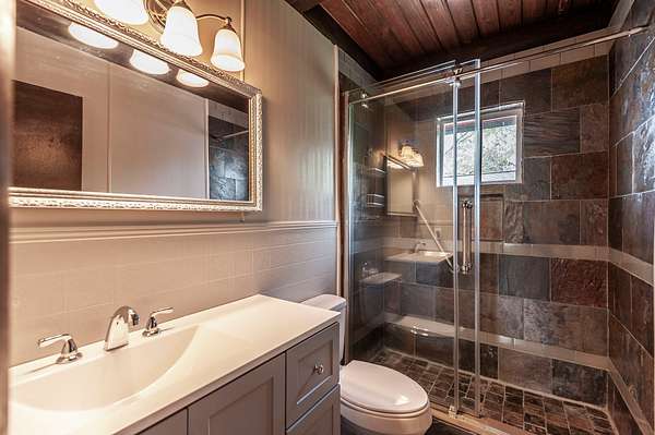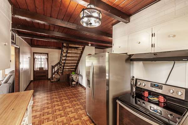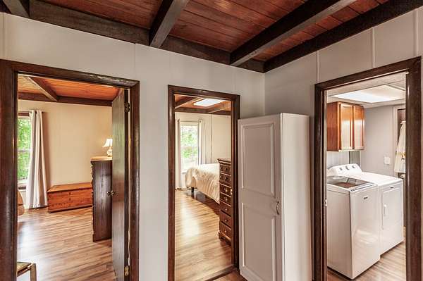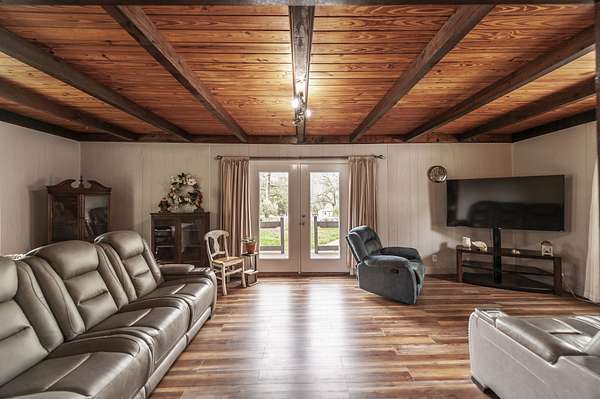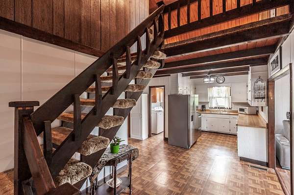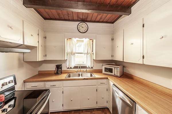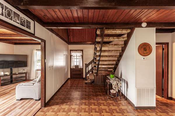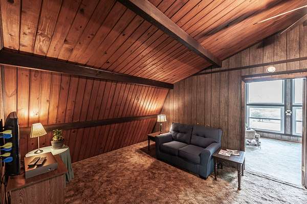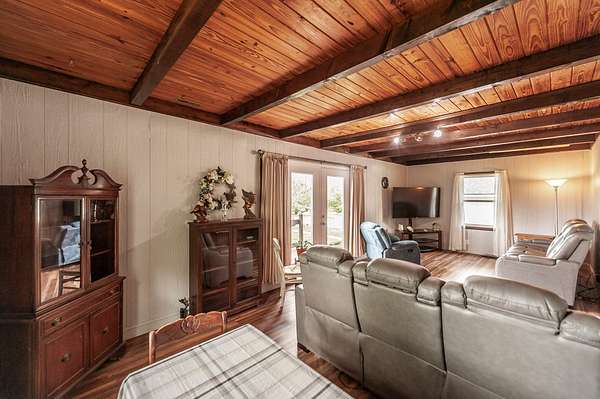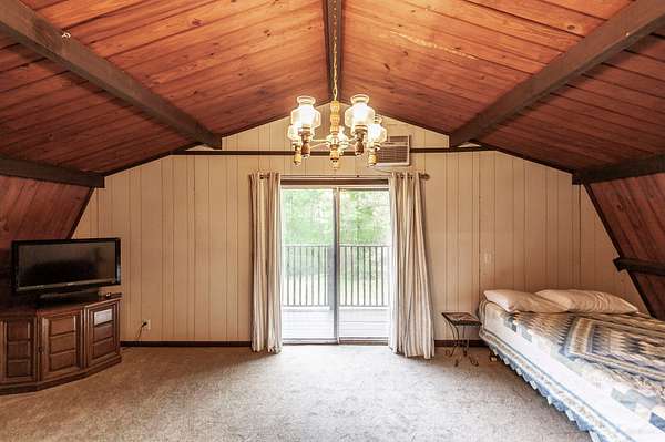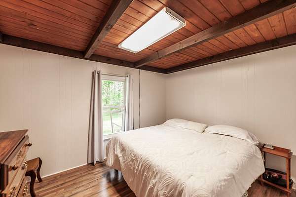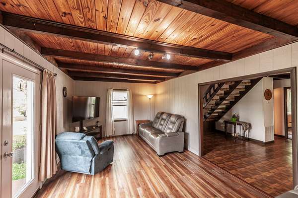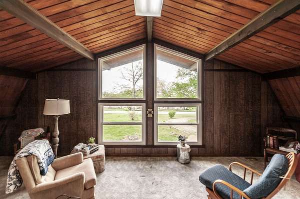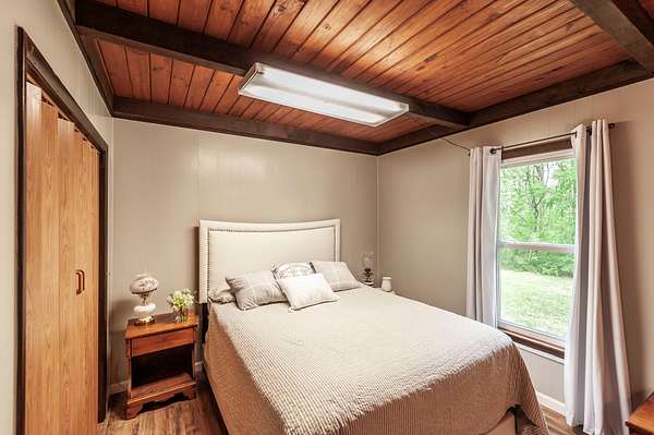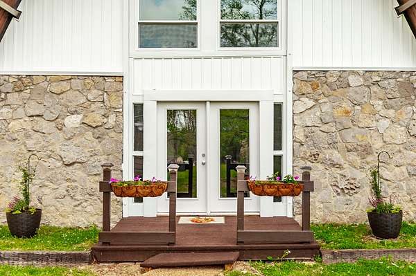 Recently updated with new board & batten vinyl siding and a beautiful stone exterior, the home welcomes you with expansive windows that flood the space with natural light and showcase the stunning countryside views. Inside, warm wood ceilings and walls create an inviting, cozy atmosphere that perfectly complements the home’s rustic design.