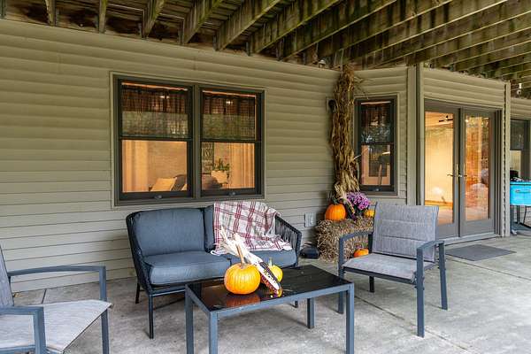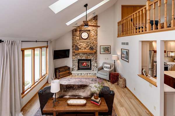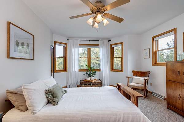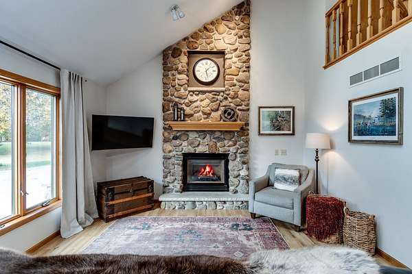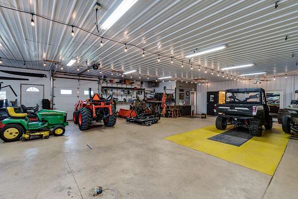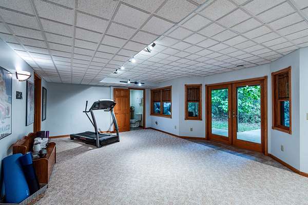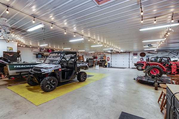 Tucked away on approximately 12 wooded acres, tree-lined drive leads to a beautiful home featuring renovated kitchen - hand-crafted cabinetry w/ walnut island, accesses wraparound deck overlooking woods & trails, while the renovated main level primary suite offers vaulted ceiling & deck access. Living room w/ soaring ceilings & floor-to-ceiling stone FP. Flexible loft space for work/study/rec area & LL walkout provides areas for entertaining, fitness, relaxation around 2nd fireplace. Exceptional 50x70 outbuilding offers full HVAC, a temp-controlled hunting room, 17x49 finished rec area with bar, gaming, TV & bathroom. Enjoy wooded trails, wildlife, & sunsets by the fire pit. 3rd BR may not have legal egress. SF/dim/acre approx - Buyer's responsibility to verify. Wood flrs under LVP per Se