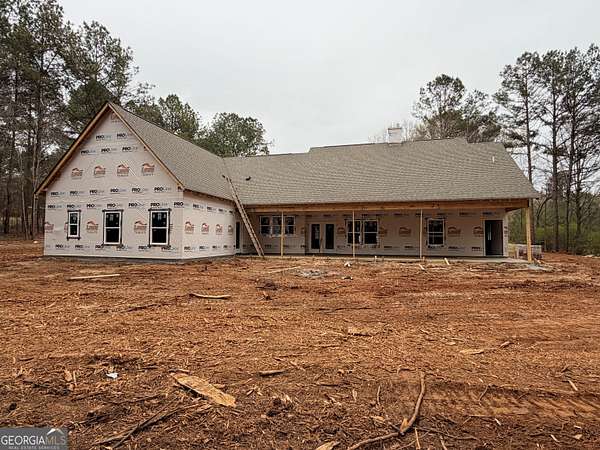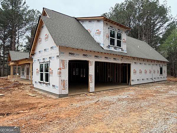 Brand-new custom home on 4.5 private acres in the Social Circle school zone, offering timeless curb appeal with board and batten Hardie siding, brick water table, and expansive front and back porches. Inside, the vaulted living area flows into a stunning kitchen featuring granite countertops, cooktop with vent hood, wall oven, butler's pantry, and oversized walk-in pantry. Decorative trim, crown molding, and high ceilings add elevated detail throughout. The vaulted primary suite includes a spa-like bath with soaking tub, oversized tile shower, and spacious walk-in closet. Each secondary bedroom features its own ensuite bath and walk-in closet for added privacy. An unfinished bonus room, already stubbed for a bath, provides future potential for additional living space. Enjoy peaceful acreage with room to expand, all while remaining convenient to shopping, dining, and I-20 access. Estimated completion June 2026. Plans and finishes subject to change at builder's discretion. Measurements approximate.