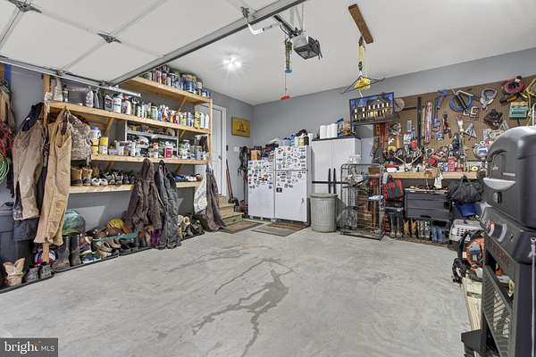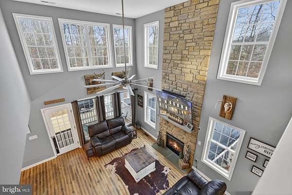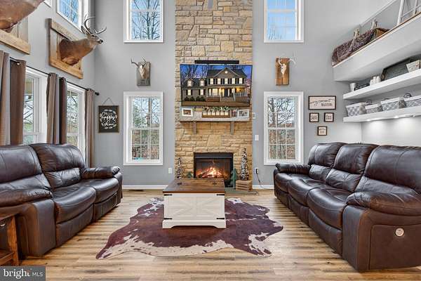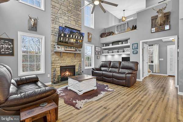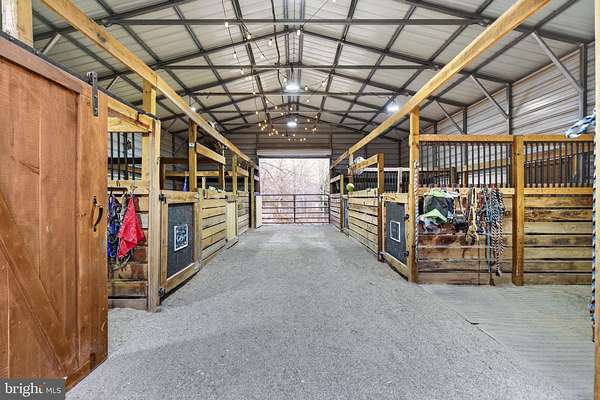 Stunning Colonial on 10 Acres with Barn, Pool & Exceptional Outdoor Living Built in 2017 by Jefferson Home Builders, this modified Seabrook model offers the perfect blend of modern comfort, functionality, and wide-open space. Set on 10 private acres, the property is ideal for those seeking room to roam, entertain, or enjoy an equestrian or outdoor lifestyle. The heart of the home is the open-concept kitchen featuring granite countertops, stainless steel appliances, and LVP flooring, flowing seamlessly into a dramatic two-story family room with a built-in desk area, custom shelving, and a striking floor-to-ceiling stone fireplace. Just off the kitchen, a porch-style deck leads down to a lower patio, creating multiple spaces for outdoor enjoyment. The main-level primary suite offers a peaceful retreat with a tray ceiling, spacious walk-in closet, and a beautifully tiled walk-in shower. Upstairs, you'll find two additional bedrooms, a full bath with double vanity, and a large bonus room over the garage, perfect for a playroom, home office, or guest space. The walk-out basement is unfinished and ready for future expansion, already plumbed for a full bathroom. Outside, the property truly shines. The 30x40 barn with a 10-foot lean-to includes five stalls, cross-tie area, tack room, hay storage, and water, making it ideal for horses or hobby farming. Additional outdoor amenities include a 32x16 above-ground pool (2021) with surrounding deck, fire pit area, and a permanent elevated hunting blind/shed, perfect for outdoor enthusiasts. This exceptional property offers space, privacy, and versatility-all just minutes from modern conveniences.