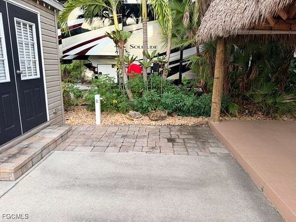 Lot 184 features a back in north west facing concrete lot. On the lot is a amazing Tiki that is 13x24' with a a super sized raised platform under the Tiki. Attached to the Tiki are numerous crank down sun and privacy shades. There is a 10 x 12 Amazon shed that offers you a laminated wood floor, nice sized shower, a toilet, a sink with overhead cabinets. Included is a utility closet with washer and dryer hook ups. Also included in the shed is a wall mounted mini split for your cooling and heating needs, an eco on demand tankless hot water heater. The lot contains a variety of landscaping giving you an abundance of privacy and includes an inground irrigation system. This is a quiet street in the resort called yellow Top Trail. Come take a look and you can feel how the super size Tiki keeps you cool from the sun exposure. Call for more details and a private showing.