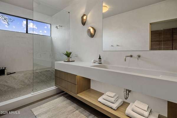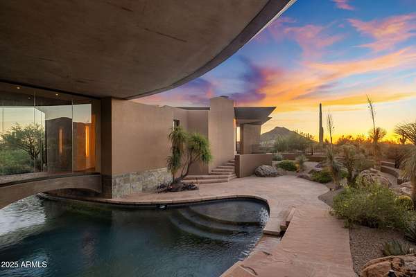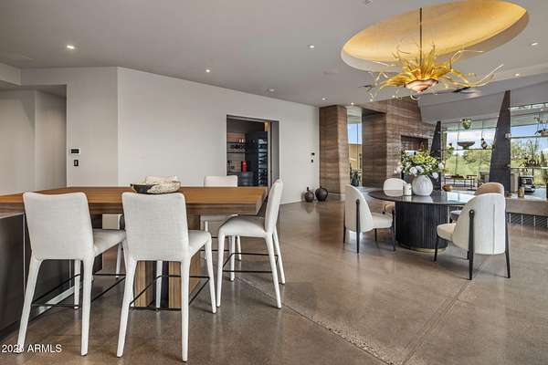 Full Golf Membership Available upon club approval. Welcome to Venado House, by Architect Shelby Wilson. This fully furnished home is inspired by great resort living, the approach, the sense of arrival. The transition between outside and inside. Fabulous unique setting in the heart of The Desert Mountain Club, which boasts 7 golf courses, 10 restaurants, Spa and fitness center, tennis, pickleball, 20+miles of private hiking trails and endless social activities. Privacy reigns on this expansive lot, offering sweeping, unobstructed views. An unforgettable entrance. As you approach, you catch a glimpse of the courtyard - the beginning of a harmonious connection between interior and exterior spaces starts here. Step inside this single-level residence, and a deliberate progression unfolds. There is a whole sequence of how the view unfolds. As you enter the house and the top of the mountains begin to reveal themselves providing a magical experience. The best rooms are the ones you spend the most time in. Here, tranquility is woven into daily life. Moving from the bedroom to the kitchen is less about expedience and more about experience. The expansive patio and pool area are designed for gathering. These outdoor living spaces invite connection, conversation, and relaxation. There's an intriguing contrast in this five-bedroom home three of those are part of a private guest casita. Designed like a boutique hotel suite, the guest rooms open through a garden path to their own retreat, offering a quiet, luxurious escape between activities. Built by the renowned Arizona-based firm The Construction Zone, Ltd.. This home represents a fusion of artistry, expertise, and practicality in construction, dedicated to delivering the finest contemporary architecture while prioritizing quality and craftsmanship. 7337 sq ft. combined - includes house + guest house.