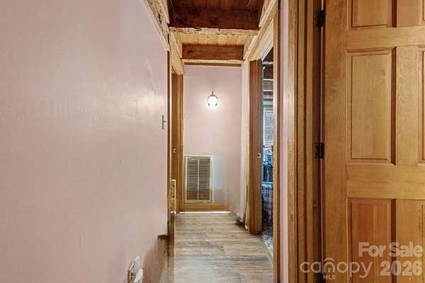 Welcome Home to this STUNNING log cabin home nestled on 5.06 acres of your very own private lot. Set off the main road, this property offers private, wooded views from either your front porch or your back porch (you pick!). This unique home lovingly built by the current owner has stunning wooden beams and architecture throughout. The main floor features an open concept with lots of natural light and 2 bedrooms sharing one full bath. The stone fireplace in the living room is a show stopper! Upstairs you will find a large loft space.