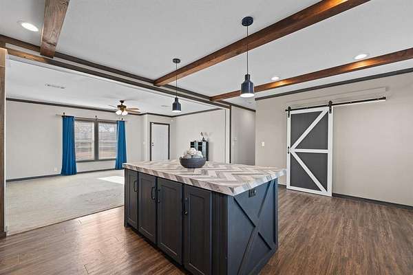 Step inside to a bright, open-concept layout designed for effortless living. Throughout the home, you'll find custom Elfa shelving closet systems, maximizing storage and organization in every room. The kitchen features plenty of cabinetry and counter space, large island, large pantry, and the refrigerator, washer, dryer, and microwave all stay, making this home truly move-in ready. The inviting living and dining areas create the perfect setting for gatherings or relaxing evenings at home. The primary suite offers a peaceful retreat with its own private bath, while additional bedrooms provide versatility for guests, family, or a home office with the flex space. Outside, the property shines with endless possibilities. A 30x60 workshop with electricity is ideal for projects, storage, or your man cave! The land is partially fenced, offering flexibility for animals, gardening, or recreation. The property is equipped with an aerobic septic system and includes a 3-car carport for ample covered parking. Whether you're looking for room to spread out, a place to work on hobbies, or a quiet rural escape, this property checks all the boxes--while still providing convenient access to the city. Come experience the charm, space, and modern conveniences of 10217 CR 418--your next country retreat awaits.