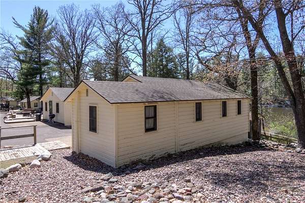 Est $1,027/moAffordable waterfront condo! Well maintained 4 bedroom cabin with access to the entire 3700+ acres of waterfront the Chetek chain of lakes has to offer. Cabin is being sold completely furnished. Great investment property currently being used as a weekly vacation rental for $1240 a week. Relax on the XL deck. New dock included. This cabin is a 3 season condo. 1 dock slip is included with the condo. Access to play ground. Additional cabins available. Internet lawn care garbage dock install/removal & common area maintenance included in the $100 monthly dues.