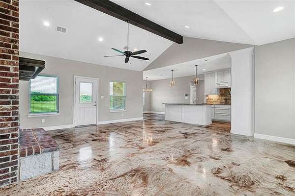 Exquisite newly constructed 4-bedroom, 3-bathroom residence sprawled across 2 serene acres in Parker County. This architectural gem showcases a thoughtful split-bedroom floor plan and a seamless open-concept design, adorned with elegant neutral tones that harmonize with any style. The grand primary suite serves as a private oasis, featuring a spa- inspired bathroom with a luxurious soaking tub, an oversized double shower, and a generous walk-in closet. Three additional bedrooms, thoughtfully positioned on the opposite wing, ensure privacy and comfort for all. Flooded with natural light and designed for effortless flow, this home is ideal for both intimate gatherings and lavish entertaining.