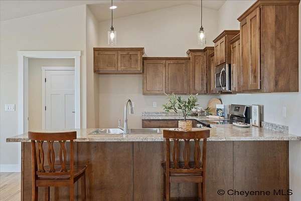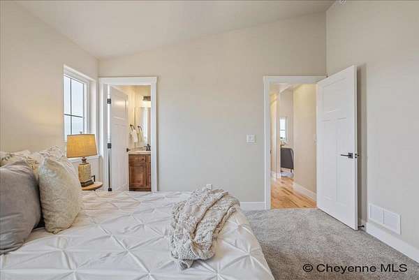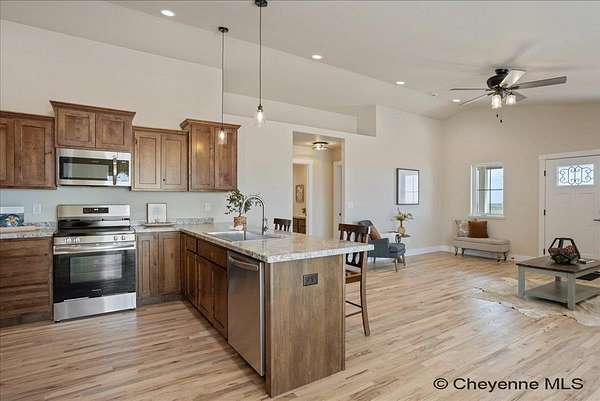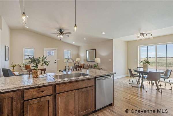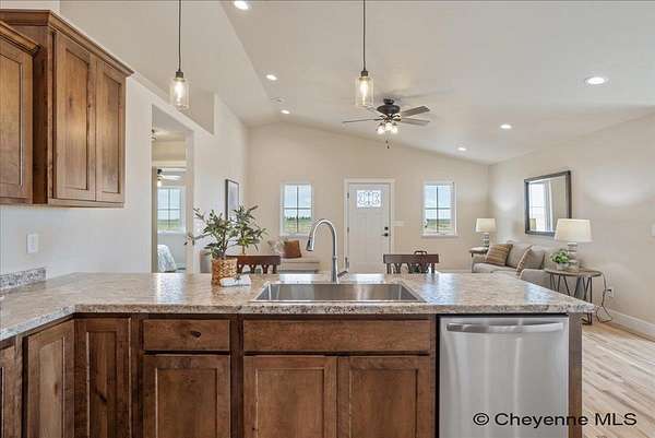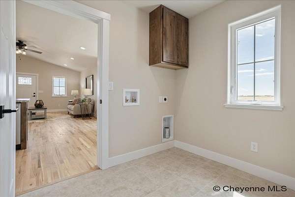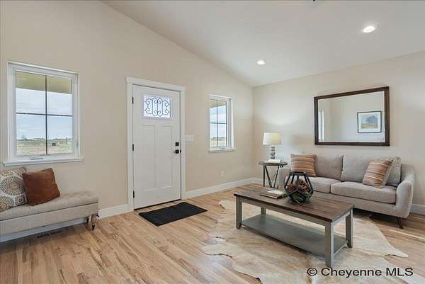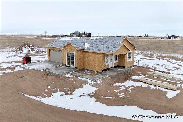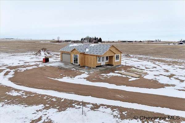 Experience peaceful country living with The Madison Plan, a popular ranch-style design by Leaning Tree Homes. This open-concept floor plan features 2 bedrooms, 2 baths, and an attached 2-car garage--perfectly combining comfort, function, and modern style. Enjoy convenient main-level living, with both bedrooms thoughtfully located on the main floor. The unfinished basement offers the opportunity for additional living space and can be fully finished as an optional upgrade. Comfort is ensured year-round with central air conditioning and a 95% high-efficiency forced-air furnace.Take in breathtaking sunrises and sunsets from this tranquil 5.46-acre property, ideal for horses or 4-H projects. Estimated completion: Summer 2026. Directions from From Downtown Cheyenne: Go east on US Interstate 80 for 15 miles. Take Exit #377 Hillsdale. Turn left & drive underneath US Interstate 80. Turn right at TA Truck Stop. Head east for 3 miles on US 80 Service Rd. Turn right on Road 143. Go 0.75 mile. This new build is located at the convenient corner of Road 143 and Augustus Pass. For over 30 years, Leaning Tree Homes, Inc. has been a trusted name in home-building throughout Cheyenne, Burns, Carpenter, Hillsdale, and beyond. Known for their craftsmanship, attention to detail, and exceptional customer service, Leaning Tree Homes continues to deliver quality custom homes designed for Wyoming living.