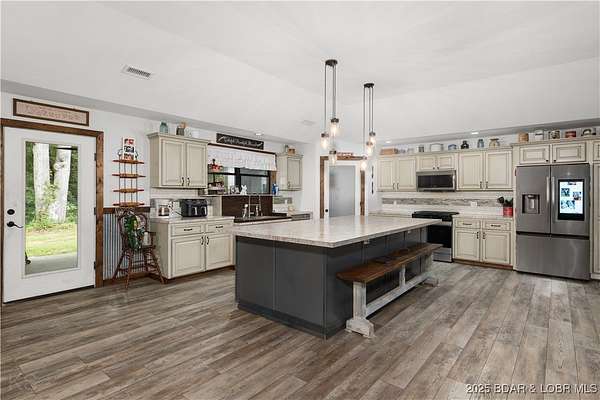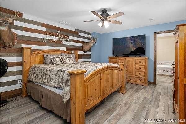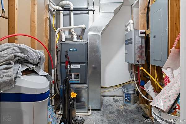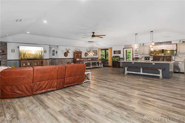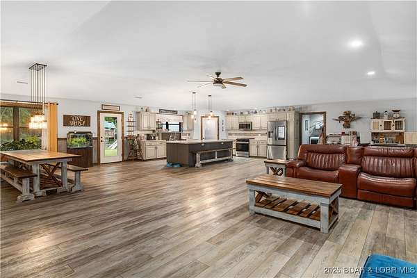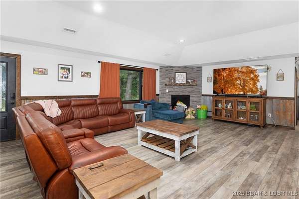 Tranquility on 16+/- Wooded Acres in Stover! Welcome to your exclusive retreat! This beautiful 3-bed, 3-bath ranch home is perfectly tucked into over 16 acres of serene, wooded landscape. Step inside to an open-concept layout that's ideal for both everyday living and entertaining. The spacious kitchen is a chef's dream, featuring an oversized island, walk-in pantry, and modern finishes. The split-bedroom design, with the large primary suite boasting a gorgeous accent wall, luxurious open bathroom, and walk in closet. This home offers main floor laundry, making daily tasks a breeze. Upstairs, you'll find a bonus room with its own dedicated split-unit HVAC system, offering comfort and flexibility for guests, a home office, or extra living space. Updates include a tankless water heater and gas fireplace. Step out back to a cozy, covered porch-the perfect spot for morning coffee, evening relaxation, or enjoying the sounds of nature. A large shop provides ample space for storage, hobbies, or working on projects. Whether you're looking for a peaceful homestead, a weekend getaway, or room to explore, this property delivers. Don't miss your chance to own a slice of Missouri paradise!