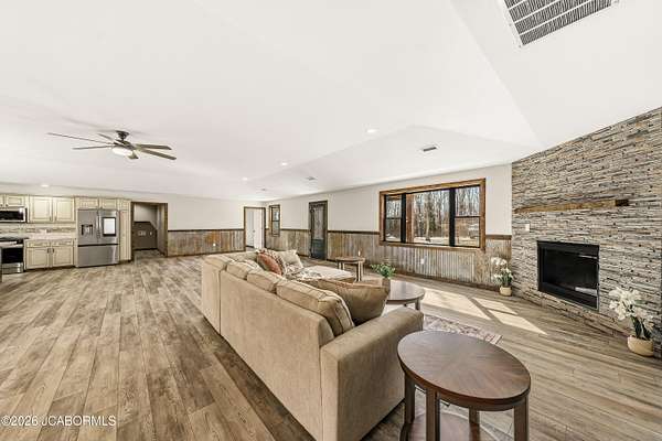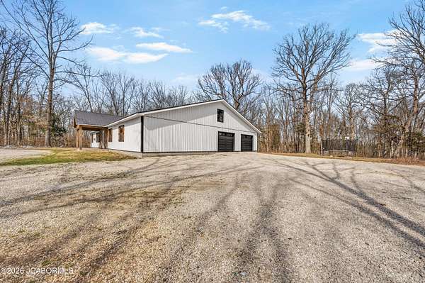 Welcome to your private countryside retreat, set on 16 breathtaking wooded acres where refined comfort meets natural beauty. From the moment you arrive, you'll be drawn to the peaceful setting--perfect for quiet mornings on the covered front porch and serene evenings on the covered back patio, surrounded by scenic views and abundant wildlife. Designed for both elegance and functionality, this spacious 3-bedroom, 3-bathroom home offers effortless main-level living with an open, thoughtfully designed floor plan ideal for both everyday living and upscale entertaining. The primary suite serves as a true sanctuary, featuring a private ensuite bath and a generous walk-in closet, creating the perfect space to unwind. Upstairs, a versatile bonus area offers endless possibilities--whether envisioned as a fourth bedroom, sophisticated home office, guest retreat, or media space tailored to your lifestyle. The home also includes a 2-car garage complete with a built-in concrete storm shelter, blending practicality with peace of mind. Outdoors, the property transforms into a haven for recreation and relaxation. Enjoy exceptional hunting opportunities with thriving deer and turkey populations right on your land. A standout feature is the impressive 30' x 50' detached shop with concrete flooring and electricity--ideal for collectors, hobbyists, or those needing premium workspace and storage. Perfectly positioned for both seclusion and convenience, this property is located just 30 minutes from Sedalia, one hour from Jefferson City, and only an hour from the Lake of the Ozarks--renowned for its vibrant summertime recreation, boating, and waterfront dining. Offering unmatched privacy, versatility, and natural beauty, this is more than a home--it's a lifestyle. Experience the perfect balance of seclusion and sophistication and make this extraordinary property your own!