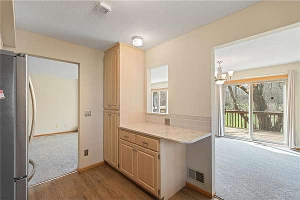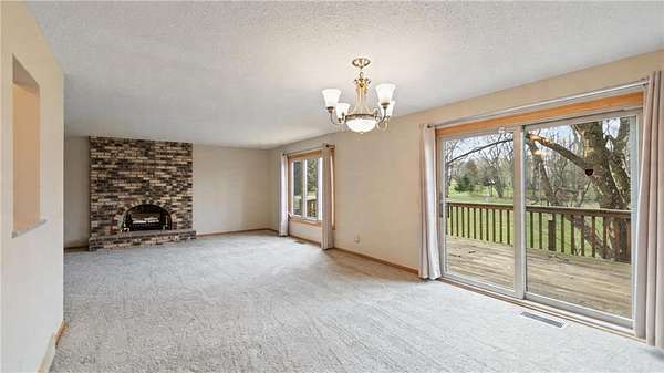 This beautifully updated home is nestled onto 1.5 acres. As you enter the home it welcomes you with a large foyer, 1/2 bath and oversized office/flex room with sliding doors out to the two tier deck. As you walk upstairs there is a large living room with a fireplace and dining room that all overlook the beautiful backyard and patio doors to the huge two tiered deck. The kitchen was remodeled and includes almost new stainless appliances and hard surface countertops. The primary suite includes double closets and a walk-thru to the updated bath with a ceramic floor. There is a second bedroom on this level. The lower level features an "L" shaped family room with a 2nd fireplace and a walkout with sliding doors out to the patio area. There is a huge bedroom on this level that could easily be converted to two bedrooms. There is another updated bath on this level and a separate laundry room area. The home has just been freshly painted throughout along with brand new carpet on the main and upper levels. There have been numerous updates including newer windows, new roof in 2019, furnace and air conditioner are 7 years old, water heater was replaced in 2024 and kitchen appliances in 2024. There is a nice size pole building in the back for storage of boats, lawn mowers, etc. The yard is beautiful and boasts many maple trees that the sellers tapped for many years to make maple syrup. This home has been well cared for and is a gem.
