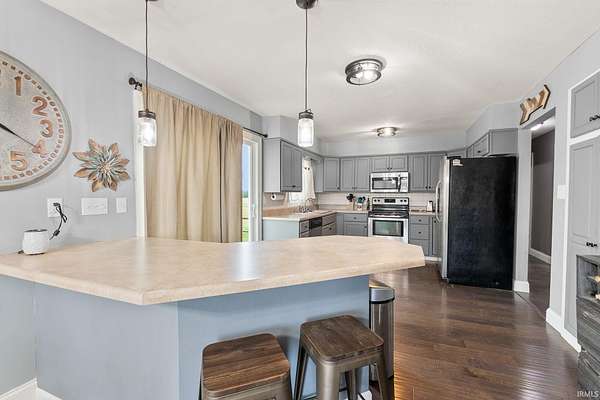 - Breakfast Bar, Closet(s) Walk-In, Countertops-Laminate, Deck Open, Detector-Smoke, Dishwasher, Disposal, Dryer Hook Up Electric, Eat-In Kitchen, Firepit, Range/Oven Hook Up Elec, Refrigerator, Water Heater Gas, Water Softener-Rented