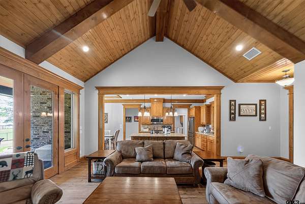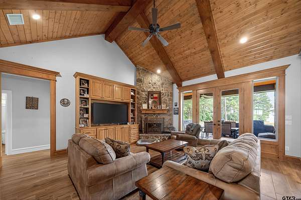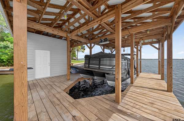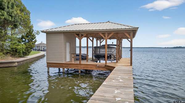 This stunning waterfront property on Lake Palestine offers the perfect blend of modern comfort and scenic tranquility. Built in 2019, this beautiful 4-bedroom, 2 full bath home spans 2,113 square feet and sits on an expansive 1.68-acre lot with just over 61 feet of pristine shoreline. Designed with both style and functionality in mind, the home features a desirable split master layout, providing privacy and a peaceful retreat. The spacious living area is anchored by a cozy wood-burning fireplace, creating a warm and inviting atmosphere for gatherings with family and friends. The exterior showcases a striking combination of brick and stone, delivering timeless curb appeal. Enjoy breathtaking water views and outdoor living at its finest, with ample space for relaxation or entertaining. The property also includes a private boat dock complete with storage and a boat slip—perfect for lake enthusiasts ready to take full advantage of life on the water. In addition, the property features an impressive 1,200 square foot workshop equipped with electricity, offering endless possibilities for hobbies, storage, or workspace needs. Whether you're looking for a full-time residence or a weekend getaway, this exceptional Lake Palestine home offers the ideal setting for lakeside living.