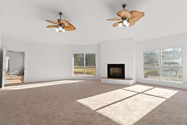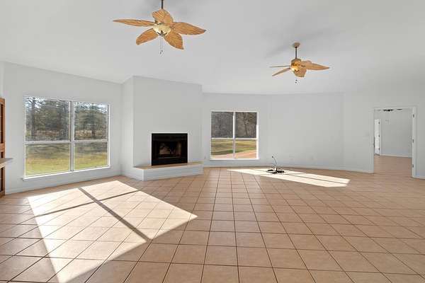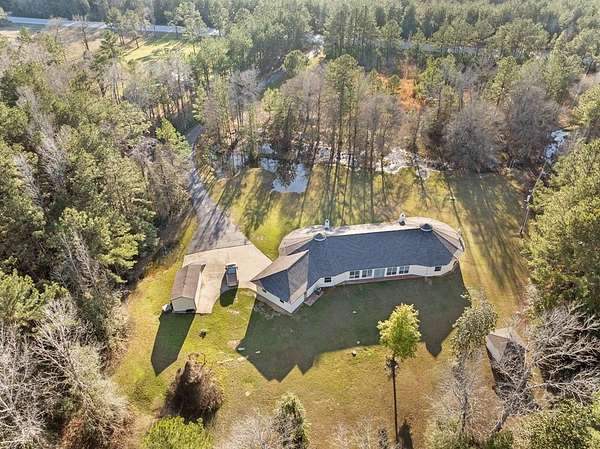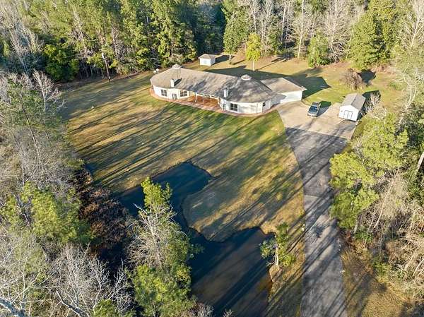 Experience peaceful country living on 7+ mostly wooded acres with a private pond. This beautifully updated home features a brand-new aerobic septic system, brand-new A/C, brand-new carpets, plus a new dishwasher and oven—all part of nearly $50,000 in recent upgrades. Inside, enjoy a unique layout with two primary bedrooms and two living areas, each with its own fireplace—like two homes in one. A spacious entry leads to a bright sunroom filled with natural light and scenic views. The main living area flows into an open kitchen, perfect for everyday living and entertaining. Additional features include a two-car garage, paved driveway, fresh paint, updated outlets, modern lighting, and a roof just 2–3 years old. Move-in ready with space, privacy, and charm—schedule your showing today!