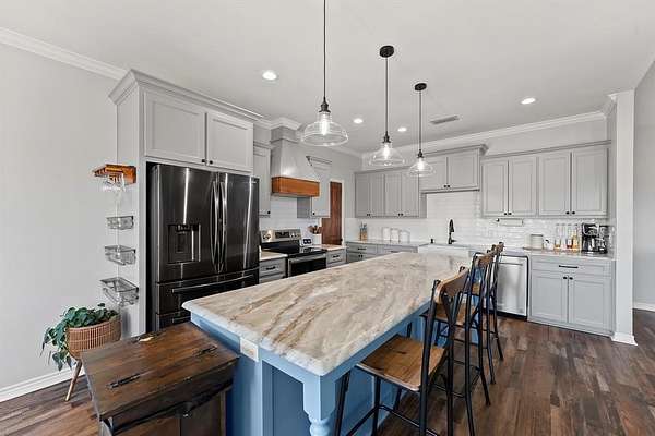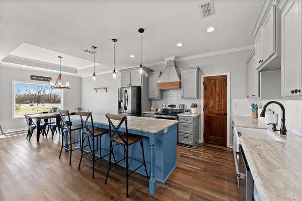 Discover the perfect blend of country charm and modern comfort with this exceptional hilltop property. As you make your way up the winding driveway—framed by an electric pipe-fenced entrance—you’ll pass beneath a canopy of trees that sets a peaceful tone the moment you arrive. Perched overlooking the land, this inviting home offers both privacy and beautiful views.