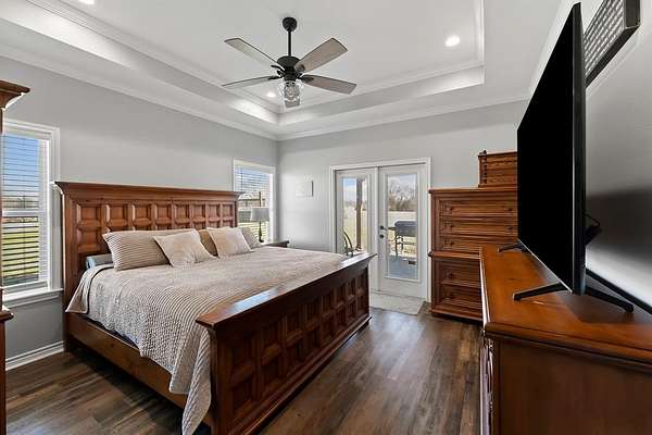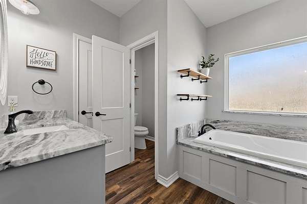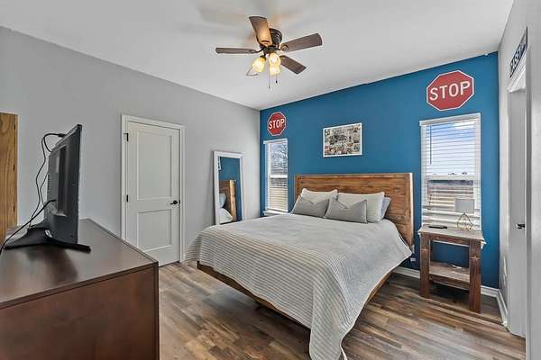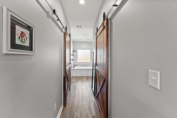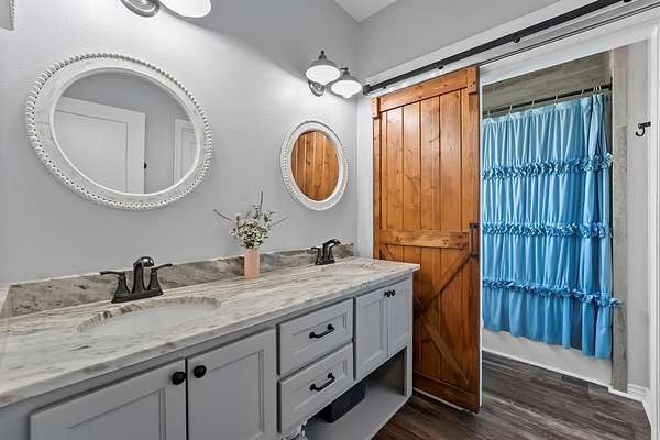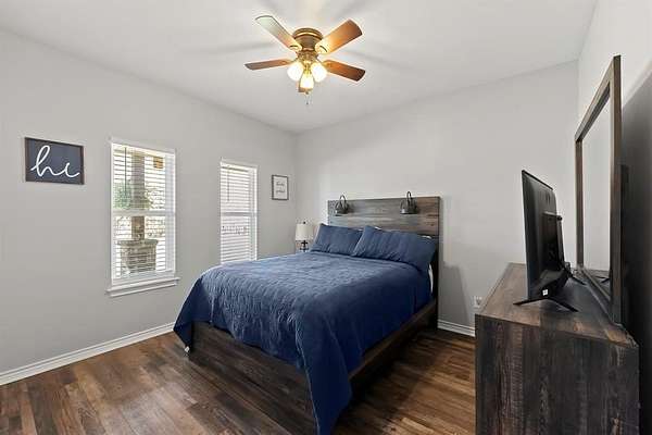 The primary suite is thoughtfully separated from the secondary bedrooms, offering a quiet retreat. Two of the additional bedrooms share a convenient Jack-and-Jill bathroom, while the third enjoys its own bath just steps away. The home is equipped with two water heaters and receives fresh, clean water from a natural well tapping into the Wilcoxson Aquifer through a full filtration system.