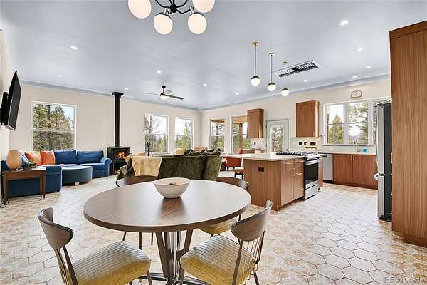 Welcome to a custom mid-century modern ranch, completed in 2023, on over two private acres in Indian Mountain (Como/Jefferson). Designed for connection and long-term value, this home dissolves the boundary between indoors and out.