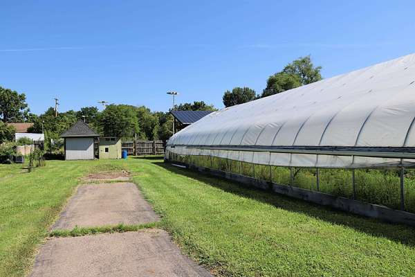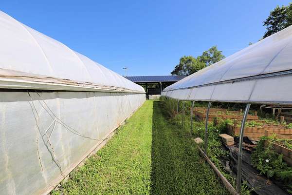 Est $187/moTurnkey community/urban farming location. Two 96' x 30' hoop houses, rain collection/cistern system, solar panels, private well, covered storage area. Electric service and public water service on-site. Well, solar panels, electric service, public water all disconnected/turned off.