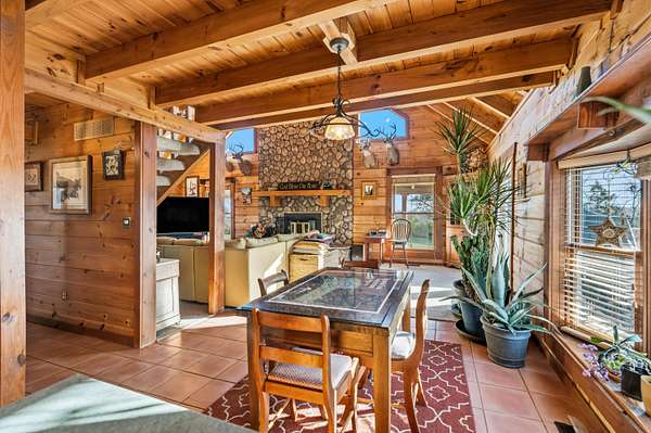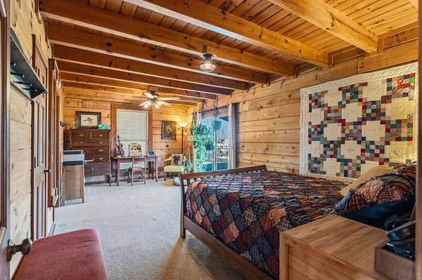 Discover this Beautiful, Conveniently Located yet Private property offering almost 35 Acres of Scenic, Versatile, and Inviting land. This Remarkable mini-farm features a Charming story-and-a-half Log home with Warm Log Interior, Vaulted, Beamed Ceilings, a Wood-Burning Fireplace (see disclosure), and a Cozy Loft that could serve as an additional bedroom. Enjoy Abundant Natural Light from the many windows, along with Separate Laundry, Two and a Half Baths, a Magnificent First Floor Primary EnSuite, and a Spacious, Relaxing Wraparound Deck with a covered section and a grill deck below-perfect for outdoor living. The land includes Beautiful Board Fencing, a Watering Trough, a Treehouse-Style Chicken Coop, a Raised Garden Bed, and a Half-Acre Stocked Pond for peaceful enjoyment. For your agricultural or recreational needs, the property is already set up with Eight Campsites featuring raised fire pits. It is zoned Agri-Tourism, adding even more Exciting potential. (For more pictures, see Bourbon Trail Campgrounds.) Outbuildings include a 40 X 40 Barn with a Large Lean-To Overhang and 2 Finished Stalls with room for up to 6, and a Spacious 50*40 Shop with electricity, generator, concrete floors, a loft, RV-Sized Garage Doors, a 50 Amp Hook-Up, and a closed-in office-creating endless Functional and Flexible workspace options. Additionally, there is a Two and a Half Car Detached Garage. The Massive 34+ Acres, featuring 4 Fields for Rotation capability, is Conveniently located near the Bourbon Trail and Bluegrass Parkway, as well as Lexington and Louisville. With Expansive Views, Peaceful Surroundings, and Unlimited Possibilities, this property truly offers a Unique and Captivating lifestyle. Call for your private showing, and PACK YOUR BAGS!