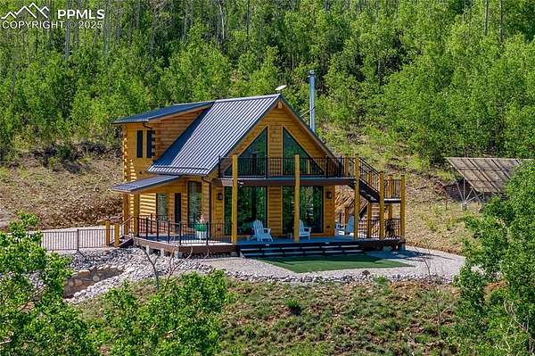 Designed for those seeking luxury, efficiency, & a deep connection to nature, this modern loft-style cabin offers an exceptional off-grid lifestyle surrounded by picturesque panoramic mountain views! Prepare to fall in love with this extraordinary mountain retreat, perfectly situated on 41.5 acres of pristine Colorado forest land & 100% off-grid. This one-of-a-kind property exudes a charm you must experience in person to fully appreciate! While secluded, you are only 10 miles to all modern conveniences & just 33 miles to Breckenridge. Enjoy daily wildlife sightings, hunt on your own land, take in the fresh air, camp & stargaze on the 12x12 trex camping platform that sits near the peak of the property offering those glorious views! Fish, boat or hike @ nearby Jefferson Lake. Fully furnished. Short-term rental opportunity. High-Speed internet. Newly constructed in 2022, immaculately maintained & very gently lived-in, this thoughtfully crafted home has an open-concept design, 23ft vaulted ceilings, & expansive 8'x7' high-efficiency windows that flood the space with natural light & bring the outdoors in. Gorgeous porcelain tile flooring throughout, quartz countertops, brand new highest quality appliances, cozy wood burning stove, full size washer & dryer & A/C ensures comfort in every season. Ample space on the property to build-on or add your dream garage. Detached 2nd-bedroom is fully furnished & sleeps 4. 3rd-bedroom option sleeps 2 (new shipping container w/custom hand painted mural). Two additional wooden sheds included. Great storage! SimpliSafe security (camaras, window sensors, glass break sensors, water leak alarm). *Please ask for a full list of upgrades & off-grid features* Do not miss the opportunity to make this exceptionally unique property your new home! A perfect blend of luxury, privacy & technology, your exquisite mountain haven is an unforgettable escape into the heart of Colorado's majesty!