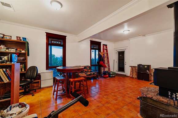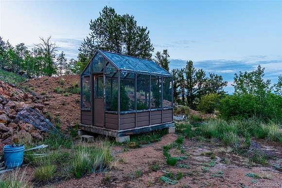 Exquisitely finished by a master craftsman, the interior of this home is a showplace. From the stone finished atrium and sun room in the back, the elegant, rich woodwork and staircases, the curved archways, the crown molding, the wainscoting, to the stone base for the wood stove, the custom finishes go on and on. This is no ordinary cabin. The main level opens to the atrium, the perfect green space to take advantage of the ample Colorado sunshine. A stone archway leads to a great room and spacious kitchen. A bedroom and wainscoted bathroom which is functional as well as beautiful are tucked off to the side. Tile floors throughout and radiant heat will keep you warm all winter. Out the beautiful, custom front door is another sun room waiting for you to turn it into your favorite place to relax. The main level opens to a huge deck, perfect for taking in the stunning mountain and valley views. The upper level is pure bliss, a large bedroom, so warm and inviting, and a luxurious bathroom with a soaking tub. The lower level is a fully finished basement with an additional full bath. A spacious, bright and open living space with a cozy wood stove, plenty of windows, and walk out access can be used as a family room, office space, anything you can imagine. There is also a roomy utility/laundry room to make your life so convenient. This cabin is perfectly designed for family and friends - a mountain getaway or full time residence. The attention to detail in this home must be seen to truly be appreciated. All of this is situated on a 6 acre, beautifully treed lot at the end of a Cul-de-Sac which affords you ultimate privacy with a rolling slope to take full advantage of the massive views. All the power is trenched underground, and the property has a domestic well, so you are free to water outside. There is also an outdoor greenhouse and shed for additional storage. The exterior of the home needs some finishing, but this luxury mountain cabin is more than move in ready.