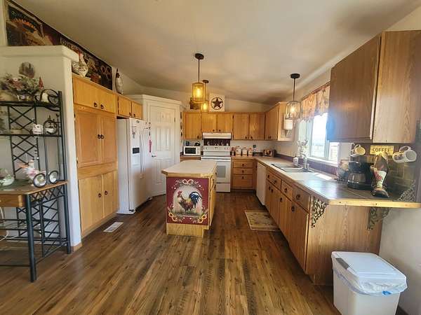 Bright and welcoming 4 bed, 3 bath home at the base of Pilot Mountain, offering space, peace, and a property fully set up for real living. Situated on 16.67 fully fenced acres at the end of 3rd St, this property features grown shade trees, established grass in both front and back yards with automatic sprinklers, and open views of Pilot Mountain and the Pilot Range. Natural light fills the home, creating a warm and inviting atmosphere throughout. The home offers a comfortable layout with a newly remodeled dining room, a spacious primary suite with large bathroom and walk-in closet, a Thelin pellet stove, and a unique wild horse chandelier adding character. Designed for functionality, the property includes a 2-car garage and a 1,200 sq ft shop (40'x30') with 10'x10'6" doors and 10' covered extensions on both sides. RV space includes water, septic, and 30-amp power hookup. Additional features include a well, separate animal area, chicken coop, conex storage with extended roof, and room to expand or enjoy the quiet surroundings. This is more than a home - it's a place to slow down, spread out, and build your lifestyle.
