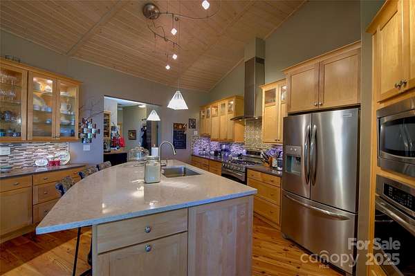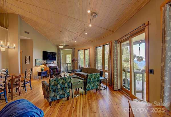 Escape to Arrowhead Retreat, a breathtaking 4-bedroom, 2-bath mountaintop pavilion-style home on 2.57 high-altitude acres, offering unrivaled panoramic views of misty Blue Ridge Mountains and lush valleys. Nestled just off US Hwy. 19-E between Burnsville and Spruce Pine, NC, this rare gem combines serene privacy with convenient access to the Penland School of Crafts, and vibrant local communities-10 minutes to Spruce Pine, 15 to Burnsville, 50 to Asheville, and 2 hours from Charlotte. UNPARALLELED VIEWS & EXCLUSIVITY: Revel in an 89-mile view-shed, where sunlight and cloud shadows dance across ancient peaks, rivaling the finest Blue Ridge Parkway overlooks. Known as "Elo Gadusi Tsudisdaya" (The Land of Unending Mountains) by the Cherokees, this property offers a front-row seat to nature's grandeur. With zoning-free land and light deed protections, additional adjoining lots are available to expand your legacy or own the entire mountaintop. ARCHITECTURAL MASTERY & SUSTAINABILITY: Built in 2011 by master craftsman J.R. Simmons, this Deltec(R)-designed home is engineered for strength and efficiency, using Southern Georgia Yellow Pine and BluWood(R) framing to resist rot, mold, and termites. Featuring Marvin(R) double-pane impact windows, James Hardie(R) siding, and a hurricane-rated roof, it's built to withstand extreme weather. A 5.7KW solar system by Sundance Power Systems, a Generac(R) 18KW propane generator, and a 1,500-gallon rainwater collection system with advanced purification ensure sustainable living. Superior Walls(R) precast concrete foundations and Fiberon(R) composite decking enhance durability and eco-friendliness. INTERIOR ELEGANCE: Step into an open floor plan with vaulted pickled-pine ceilings, reclaimed antique pine floors, and oversized windows framing ever-changing vistas. The craftsman-style kitchen boasts GE Profile(TM) appliances, quartz countertops, a curved island, and custom maple cabinetry by local artisan John Pendley. A Bari(R) soapstone rotating fireplace, meeting 2020 EPA standards, adds warmth and sophistication. The helical staircase, with rope-inlaid handrails and ornate ironwork, leads to a light-filled upper landing. The master suite features dual vanities, a jetted tub, and a walk-in closet, while the lower level offers an entertainment area with a kegerator bar, Bark House(R) accents, and a Jotul(R) wood stove. LIFESTYLE & AMENITIES: Enjoy radiant floor heating, ductless hybrid heat/AC, and a whole-house dehumidifier. The lower-level media room, guest bath with a stand-up urinal, and walk-out gravel area elevate entertainment. A scullery/pantry, laundry room, and supersized garage with workshop potential add functionality. Native wildlife and a diverse ecosystem thrive in this National Park-like setting, perfect for families or retreats. YOUR MOUNTAIN LEGACY AWAITS: At 1024 Arrowhead Ridge Road, every drive is scenic, every sunset unforgettable. Leave stress behind and embrace a lifestyle where altitude uplifts your attitude. This is mountain living at its finest-secure, sustainable, and exclusive. Schedule your private tour today to claim your piece of the Eternal Mountains!
