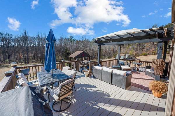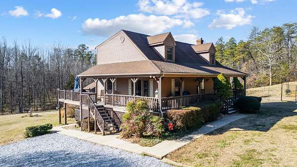 Tucked away on five private acres in the heart of Campbell Co., this charming Cape Cod offers the perfect blend of country living & everyday convenience. A welcoming wrap around porch with an expansive deck and pergola overlooking the pool and grounds is ideal for outdoor living and entertaining. A formal living room and an updated Kitchen, which is the heart of the home. Upgrades include granite counters, tile backsplash, new high end appliances, expanded Island with new cooktop, double-wall ovens, farm sink,and neutral luxury plank vinyl floors throughout. The main level primary bedroom is spacious and offers two large walk-in closets, and a charming en suite. The upper level features 2 large bedrooms with new carpeting and dormers for excellent natural light and a full guest bath. The terrace level offers a large den, freestanding gas fireplace, bonus room, full bath, and laundry. In ground pool, hot tub, and a pavillion overlooking the pool. 2 Sheds, fire pit, 15 mins. to LU.