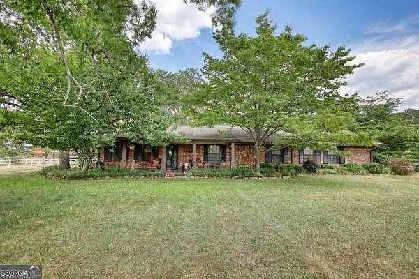 Farm sweet farm. This 12.42-acre turnkey horse farm is made up of a 9-acre parcel and a 3-acre parcel. The 4-bedroom 2-bathroom home with a brand new 2025 roof boasts tile and hardwood floors, custom tile primary shower with frameless glass shower door. The Kitchen, dining room and living room blend together making entertaining and being with family easy. Enjoy cooking with your double oven, hard surface counter tops and tile backsplash. The masonry fireplace with wood insert is sure to keep you warm all winter long. Out-side you can enjoy sitting around the firepit while your animals play in the pastures and or yard. Escape to your 20x40 Barn with garage doors on each side and a loft up top. Turn the loft into an Airbnb or secondary living space! Behind the barn your horses or farm animals will be comfortable in the 4 10x10 open air stalls with isle. There is a secondary outbuilding to store your tack, equipment or feed. The pastures are fenced with PVC plastic 3 board fencing and electric wire across the top board and run in shed to get out of the elements. In the front of the farm there is a graded riding area. This property is convenient to the GA International Horse Park, Clybel Wildlife Management Center and Trails, Ocmulgee River Trails, Bouckaert Farms, Ashland Farm trails and cross country and a short drive to Aiken South Carolina. This property has something for everyone whether you're looking for more space, wanting to homestead, or your goal is to bring your horses home, it checks all of the boxes!