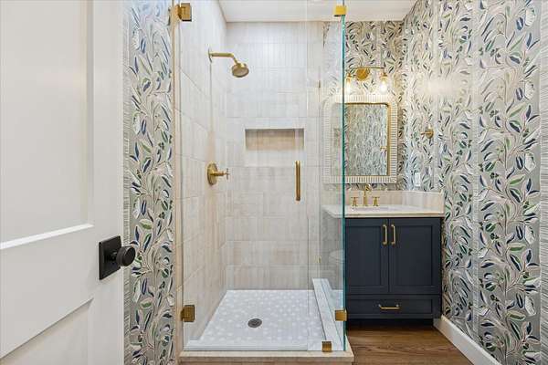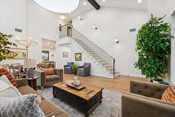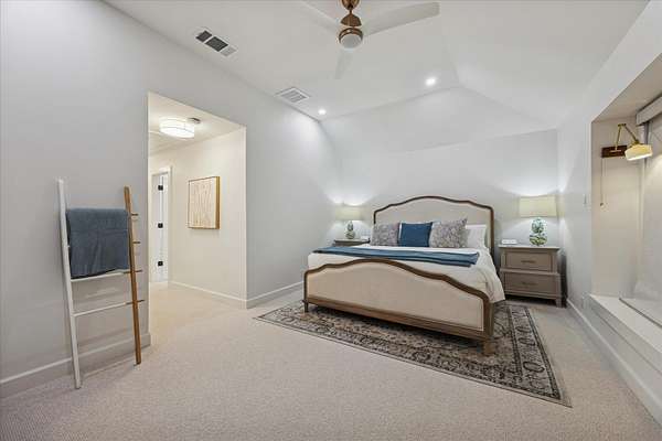 - Bar, Breakfast Bar, Built-In Features, Ceiling Fan(s), Ceiling-High, Crown Molding, Double Vanity, Eat-In Kitchen, Interior Steps, Kitchen Island, Multiple Dining Areas, Multiple Living Areas, Open Floorplan, Pantry, Quartz Counters, Recessed Lighting, Smart Thermostat, Soaking Tub, Vaulted Ceiling(s), Walk-In Closet(s), Wired For Sound