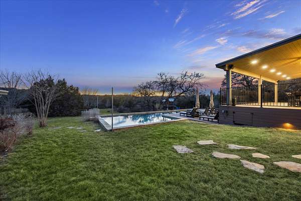 Welcome to 1024 Hidden Hills-an exceptional, designer-led renovation where no detail was overlooked and every space feels intentional. With soaring ceilings, an open and inviting layout, and abundant natural light, this home is the definition of thoughtfully reimagined. From statement lighting and custom finishes to a modern chef's kitchen built for both everyday life and entertaining, every selection was made with style and function in mind. At the heart of the home, the luxury kitchen shines with high-end Signature Line appliances, double ovens, a pot filler, ceramic apron-front sink, designer fixtures, and Shaker-style cabinetry in a stunning mix of white painted wood and rich white oak-beautifully finished with a striking white oak vent hood. And then there's the laundry room... so beautifully designed it might become your new favorite room in the house. Situated on 1.86 acres with a detached oversized garage, this 4 bedroom, 3 bath home also offers a large media/play room, formal living, and a warm family room with fireplace-perfectly positioned next to the heart of the home: the luxury kitchen. The outdoor experience is just as impressive: a stunning back patio overlooks the pool, and a pass-through window from the kitchen makes hosting effortless-whether it's cocktails outside or weekend brunch by the water. A wall of sliding glass doors opens wide to create a true indoor-outdoor living space that feels like a private Hill Country retreat. Located in highly desired Dripping Springs ISD. Welcome home to 1024 Hidden Hills Drive!