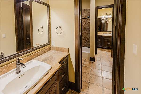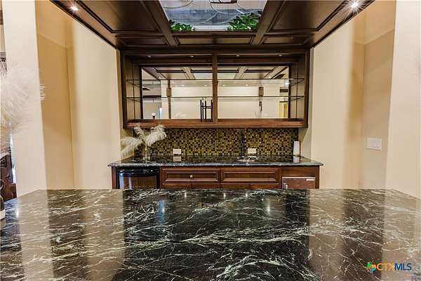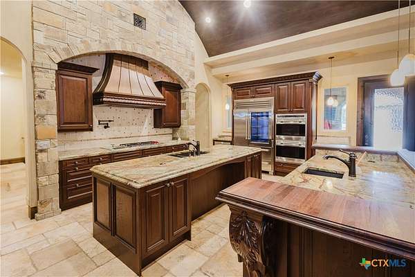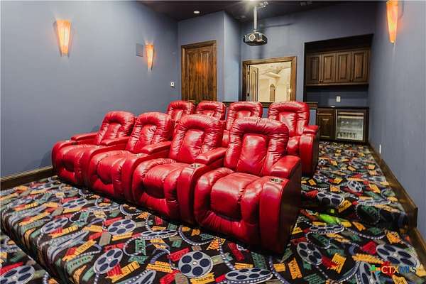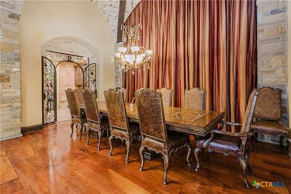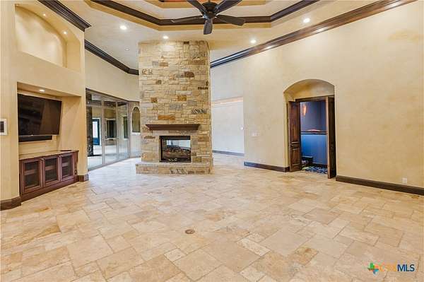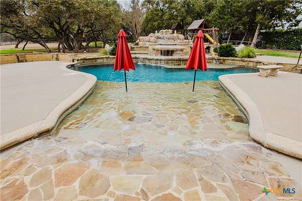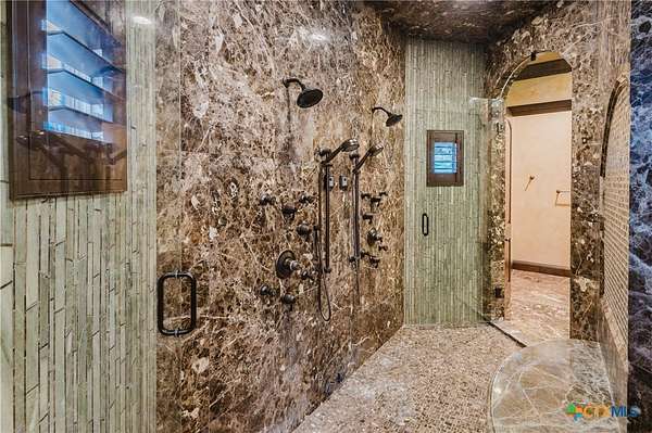 A Slice of Hill Country Heaven in New Braunfels! Welcome to over 9,200 sq. ft. of pure Hill Country charm, nestled on 2+ acres of prime Texas land. From the moment you step through the Mediterranean-style courtyard, past the beautiful fountain, you'll be blown away by this home's grand entrance and warm, inviting feel. Custom-built with Texas craftsmanship in mind, this home boasts mesquite wood floors, soaring cathedral ceilings, stunning marble mosaics, and rich wood accents. Huge Nanawalls seamlessly bring the outdoors in, and the Venetian plaster finishes add a touch of timeless elegance. Inside, you'll find 3 spacious bedrooms on the main floor, a Jack-and-Jill setup upstairs, 4 full bathrooms, and 3 half baths. The owner's suite feels like a luxury retreat, and the chef's kitchen is built for gathering, featuring high-end finishes and plenty of space to cook up something special. Love to entertain? You'll adore the custom wine room, home theater with Italian leather seating, and the full bar upstairs-complete with its own fridge and ice maker. There are also multiple offices, a safe room, a library, a craft room, and an oversized 4-car garage with A/C. But the real showstopper? Your very own backyard paradise. Whether you're grilling in the outdoor kitchen, relaxing under the oversized covered patio, or unwinding in the heated pool and hot tub next to the waterfall and fire pit, there's no better place to kick back. You even have your own putting green! And don't forget the casita-designed with the same attention to detail as the main house. With 2 bedrooms, a full kitchen, living space, laundry room, and an attached 3-car garage, it's perfect for guests or extended family. If you're looking for a one-of-a-kind Texas estate that offers luxury, comfort, and plenty of space to enjoy the good life, you've just found it. Come on out and see for yourself-you won't want to leave!
