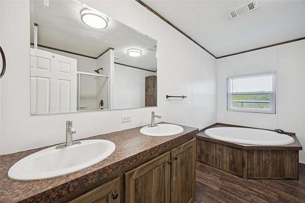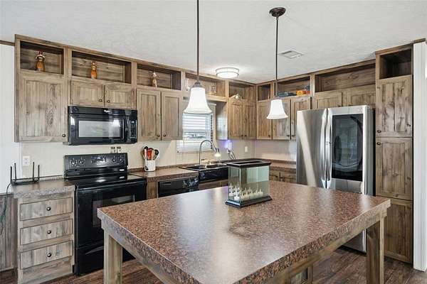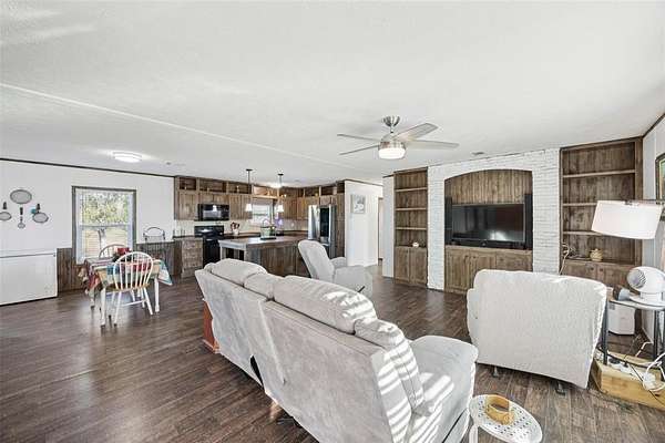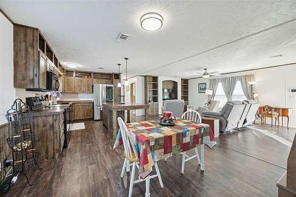 Step into this beautifully maintained manufactured home set on a serene acreage parcel in Venus. The home features an open floor plan with a generous living room flowing into the kitchen and dining area. The kitchen boasts a large island, abundant cabinetry, and upgraded fixtures, creating a welcoming and functional space.