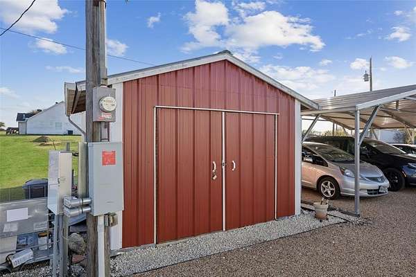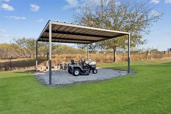 Outside you'll find significant acreage fenced and set up for animals, giving you room for pasture, livestock or hobby farming. A covered 3-car carport provides protected parking and exterior storage. Additional features include a dedicated storage shed, a heavy-duty storage container, and an 8 x 8 storm shelter providing added resilience and peace of mind.