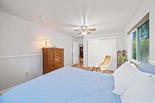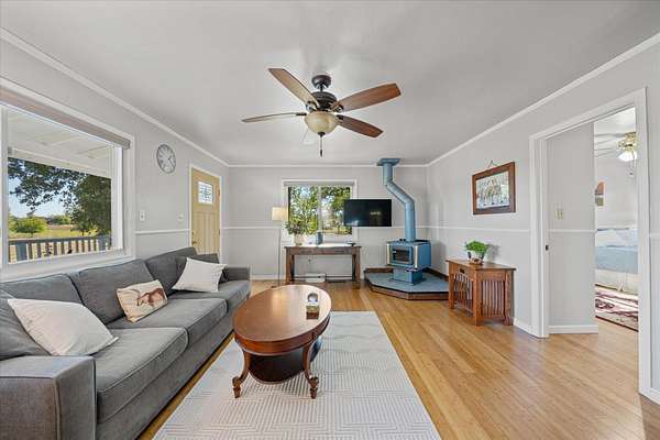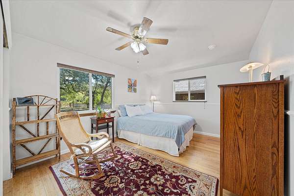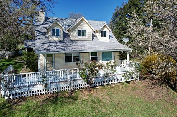 Charming and comfortable Cape Cod-style home in Palo Cedro set on over 6 scenic acres. The front pasture, previously irrigated, offers potential for horses or livestock, along with a classic barn, pole barn, large shop, and two-car garage for ample storage and workspace. Enjoy beautiful views of Mt. Lassen and wide open countryside from your living room and kitchen windows. The home features granite slab countertops, updated kitchen cabinetry, and bamboo hardwood flooring, creating a warm and inviting interior. Step out onto the spacious front deck to take in stunning morning sunrises. The home also includes low-maintenance vinyl siding, energy-efficient windows, and a newer HVAC system for year-round comfort. The downstairs primary bedroom offers its own private deck, plus an additional guest bedroom on the main level. Two more bedrooms and a full bathroom are located upstairs, providing plenty of space for family or guests. Relax in the private hot tub while enjoying the peaceful setting. Tucked away at the end of a private driveway for added privacy, yet conveniently located near the small-town charm of Palo Cedro, it's just minutes from Shasta Lake, Mt. Lassen, and downtown Redding.