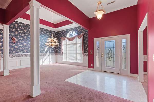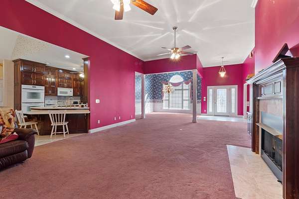 Nestled on a sprawling 8.72-acre wooded parcel, this charming all-brick rancher is the perfect retreat for those who value privacy, space, and a connection to nature. The property features a gently sloping landscape, wooded, and for fishing enthusiasts or those who simply love spending peaceful afternoons by the water, the one-acre stocked pond is a true highlight-ideal for casting a line or enjoying tranquil moments surrounded by wildlife. Step inside to discover a thoughtfully designed single-family home with three spacious bedrooms, including a primary suite boasting a double trey ceiling, walk-in shower, and double vanity. The split bedroom floor plan offers privacy for family and guests, complemented by two full bathrooms and a formal dining room perfect for gatherings. The heart of the home is a grand great room, complete with a gas fireplace, built-in bookcases and cabinets, and soaring 12-foot ceilings that create an inviting space for relaxation or entertaining. Additional living spaces include a flexible room that can serve as a living room or office, all enhanced by tall ceilings throughout the house. The well-equipped kitchen features double wall ovens, an electric cooktop, microwave, and solid surface countertops. Conveniently located off the Kitchen is the Laundry room, oversized to include a pantry and cabinetry over the washer and dryer. For those needing extra storage or dreaming of a workshop, the expansive 9-foot crawlspace offers significant space and the potential to be finished into a basement. The property also includes a two-car garage and a screened-in porch-perfect for enjoying the serene surroundings. Whether you're seeking a peaceful homestead with ample land for outdoor activities, gardening, or simply enjoying the sights and sounds of nature, this property offers a rare blend of comfort, functionality, and natural beauty. Check out the pictures and decided for yourself.