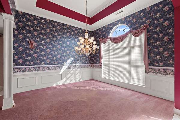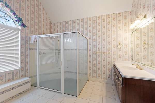 - Bookcases, Breakfast Room, Ceiling Fan(s), Central Vacuum, Chandelier, Crown Molding, High Ceilings, Open Floorplan, Separate Dining Room, Separate Shower, Tub/Shower Combo
