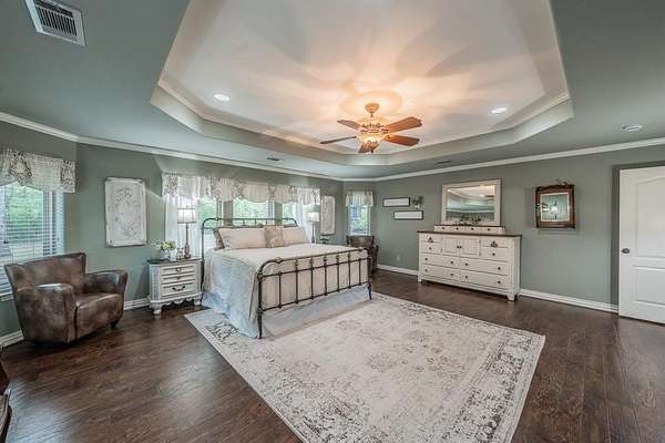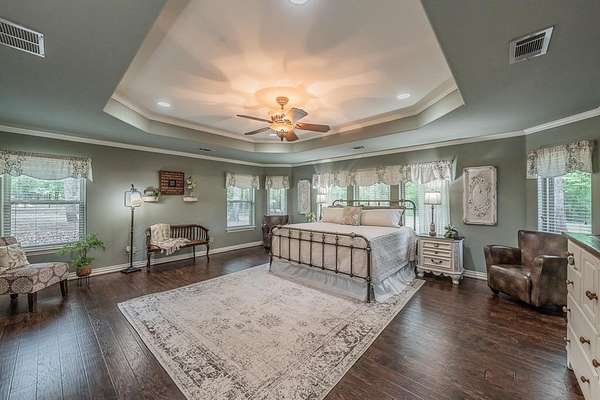 Welcome to your private slice of paradise on almost 7 breathtaking acres where comfort, beauty, and functionality come together seamlessly. This immaculate 3-bedroom, 3-bath home has been meticulously maintained and is move-in ready, offering peace of mind with a pre-inspection already completed and major updates including updated roof, windows, and HVAC. Inside, you'll find stunning hand-scraped hardwood floors and a warm, inviting layout designed for everyday living and entertaining. Stunning oversized primary bedroom complete with ensuite bath featuring wrap around master closet and laundry room. The home also features ideal separate living quarters with a private entrance, full kitchen area, and living space, making it perfect for a mother-in-law suite, guests, or multi-generational living.Step outside and experience everything country living should be. Enjoy your own stocked fishing pond, a massive 30x60 workshop with endless possibilities, and serene views in every direction. From the upstairs bedroom, walk out onto the incredible balcony and take in the rolling scenery for miles. Watch deer roam freely and listen to the birds sing as you unwind in total tranquility.This property is more than a home, it’s a lifestyle.