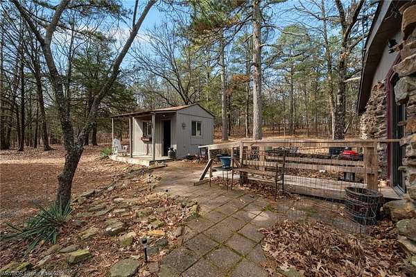If you've been dreaming of privacy and your own hunting land, this is it! This exceptional 20-acre wooded property features a well maintained 3-bedroom, 2-bath rock home offering the perfect blend of comfort and seclusion. The open-concept living and dining areas create a welcoming space for gatherings, highlighted by a stunning rock, wood-burning fireplace. The primary bedroom includes a private office, while an additional sitting room provides a peaceful place to relax and enjoy the surrounding views.