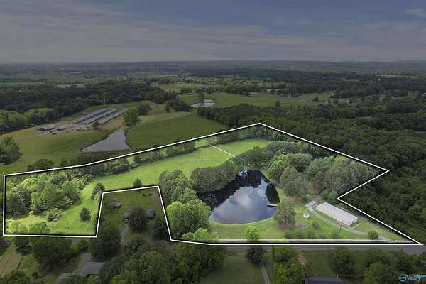 Welcome to your dream estate with home, mother in law suite, pond, barn, machine shop, etc. all on 15+ picturesque acres! Step inside the well-maintained home featuring a bright, open layout, cozy living areas, and a full finished basement perfect for entertaining, home office, or guest space. Outside, the property is truly a dream with a tranquil pond that provides stunning views and a relaxing backdrop for everyday life. The spacious barn & acreage that is partially fenced is perfect for your horses or livestock. The impressive 4,000 sq. ft. shop is fully equipped with a production area, several offices, & restrooms. Just a short 10 minute drive to Lake Guntersville and 35 to Huntsville!