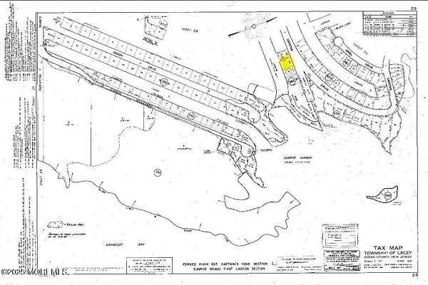 Est $6,470/moIncredible find!!! This sought after location in the desirable Sunrise Beach section of Lacey Township is now available! Build your masterpiece nearly on the Barnegat Bay! A boater's dream: with 75 feet NEW vinyl bulkhead, all new docks, 15-foot-deep water. 75x100 fully buildable lot with public water, public sewer and gas on the property. Quick and easy access to Island Beach State Park, Tices Shoal and the beautiful Barnegat Inlet. An exceptional opportunity awaits to bring your waterfront vision to life. Seas the Day!